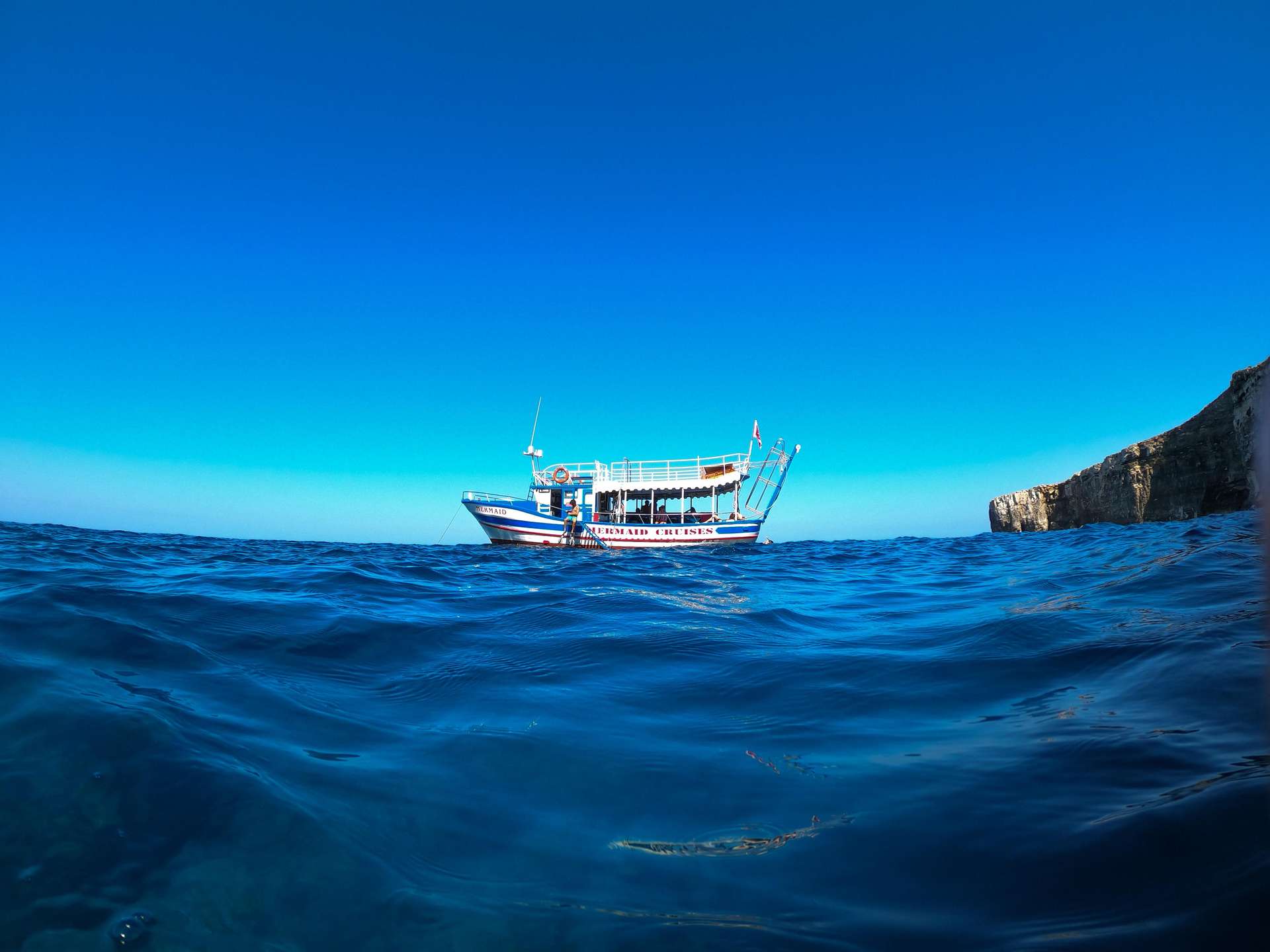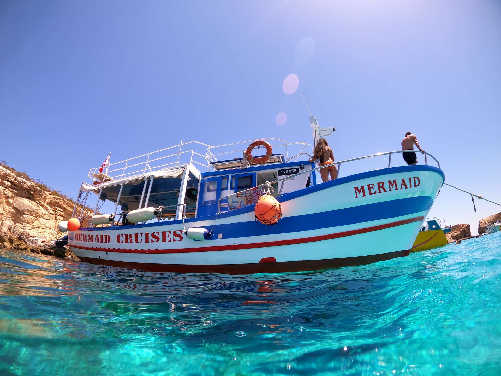 Feel the adrenalin rush as you dive from the boat, and explore the idyllic landscape of Comino. Relax in comfort. You can also purchase lunch aboard the Mermaid, as a snack bar and toilet facilities are available onboard.