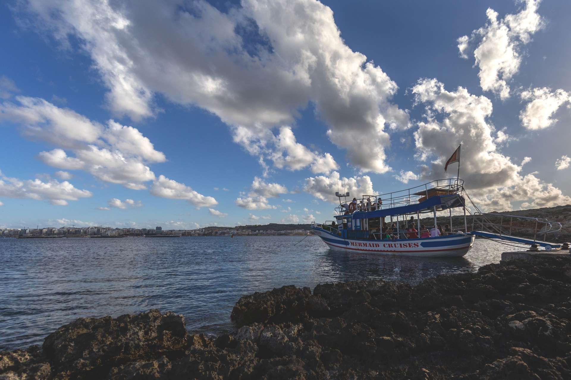 Boarding commences at Dawret Il-Gzejjer, Bugibba Jetty and departs sharp on time setting out for the full day cruise.