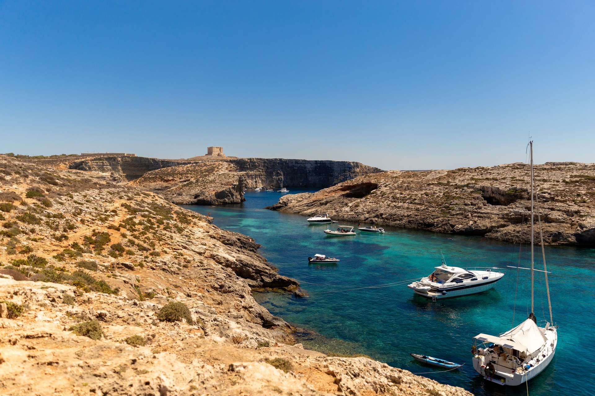 Board your boat in the morning at Bugibba, St Paul’s Bay, and meet your captain before setting off on a full-day cruise. Enter stunning caves and admire the coastal scenery on your way to your first stop. Arrive at Comino for some time to explore and take in the famous Blue Lagoon as you swim, snorkel, and dive into the crystal-clear waters of the Mediterranean Sea. Discover the island by foot and have the chance to purchase lunch before cruising to your second stop. Set foot on the island of Gozo and immerse yourself in its vibrant Gozitian culture as you stroll through the area. Make your way back to the harbor of Bugibba, where your delightful day at sea will come to an end.