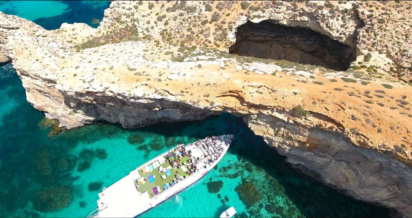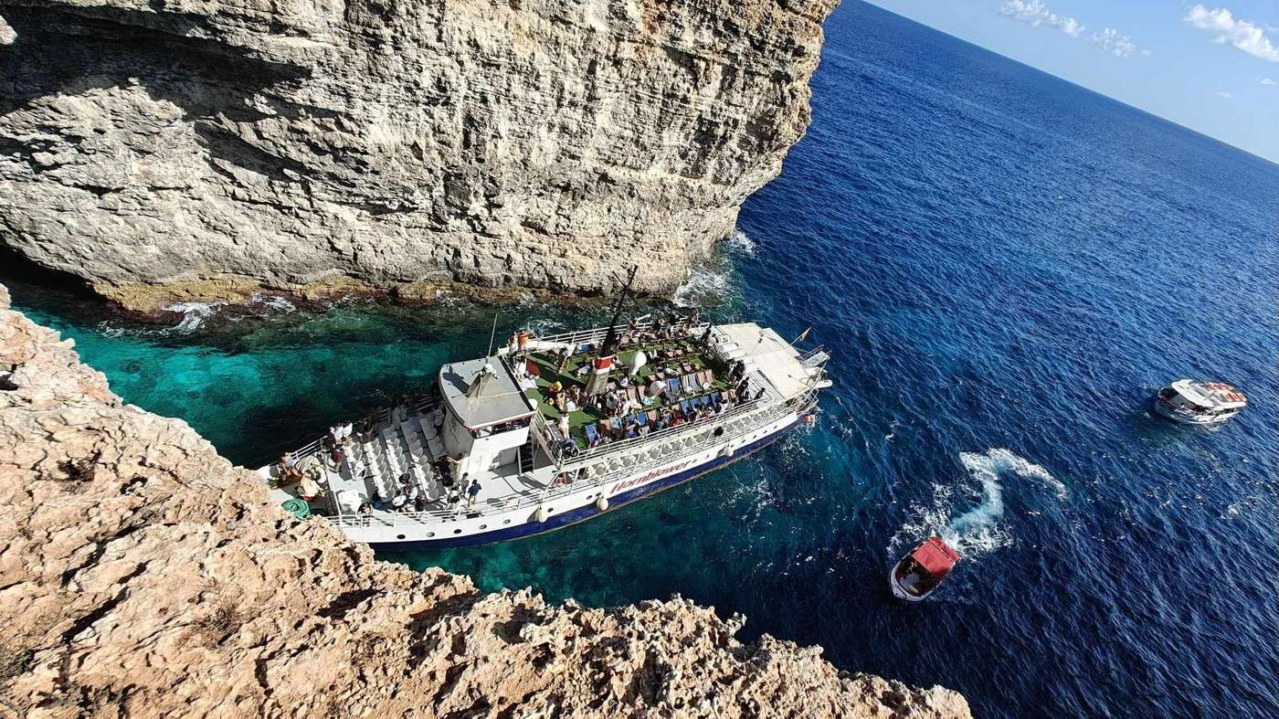 Entering into the Ahrax and Santa Maria caves, where the captain brings the boat close enough for fantastic photo opportunities accessible only by sea.