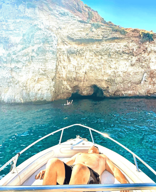 Dive into the refreshing blue depths, snorkel among the sea bream, and relax on the boat’s sundeck under the sun. Our skipper will share important information, fascinating facts, and entertaining stories about the areas we visit. We’re here to create the perfect private boat trip around Comino, customized for you and your loved ones.