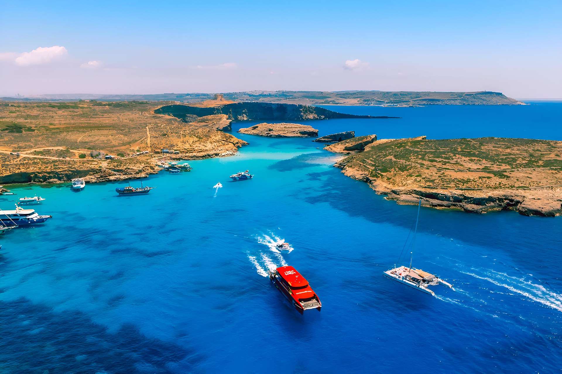 Aboard our modern Catamaran boat trip, you will depart in the morning from Sliema Ferries in Sliema or from Buġibba Jetty in St. Paul’s Bay (choose your preferred departure point and time when booking).
