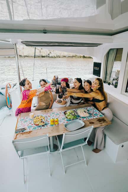 Clients are encouraged to bring their own food and drinks or choose from a menu of refreshments available on board. Some catamaran tours may also offer the option to order catering in advance or bring local specialties, enhancing the culinary experience against the backdrop of the Mediterranean.